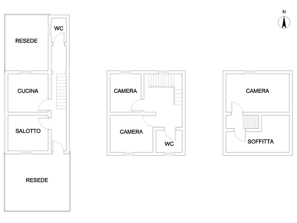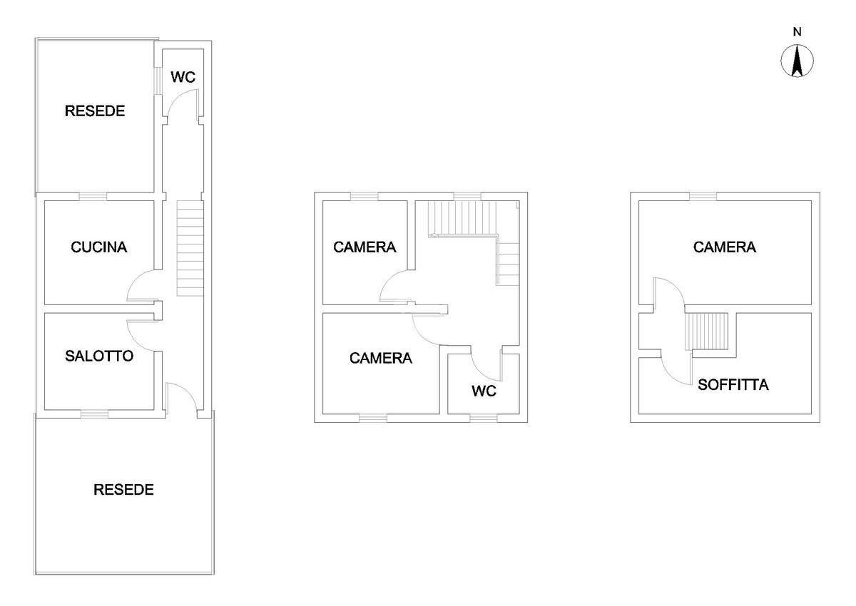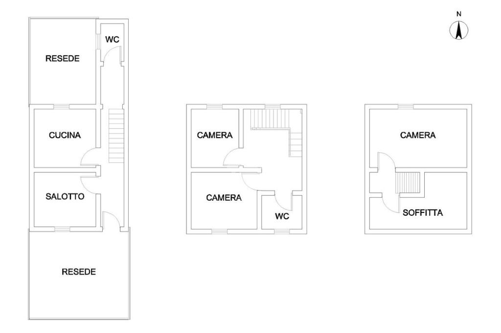 Al primo piano troviamo la zona notte che comprende due camere da letto, una matrimoniale e una doppia, e il secondo bagno finestrato con vasca. Al secondo piano si trova la mansarda dove è stata ricavata la terza camera da letto matrimoniale, e la soffitta a uso deposito.
